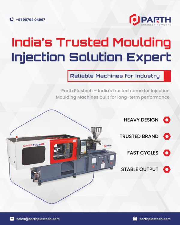Our machines are crafted with precision and efficiency in mind, ensuring optimal performance and reliability. From small-scale production to large-scale manufacturing, Parth Plastech stands among the Best plastic injection moulding machine manufacturers in India. We also specialize as a trusted PVC Injection Moulding Machine Manufacturer and PET Injection Moulding Machine Manufacturer, serving diverse industry requirements with high-quality, durable, and efficient solutions.